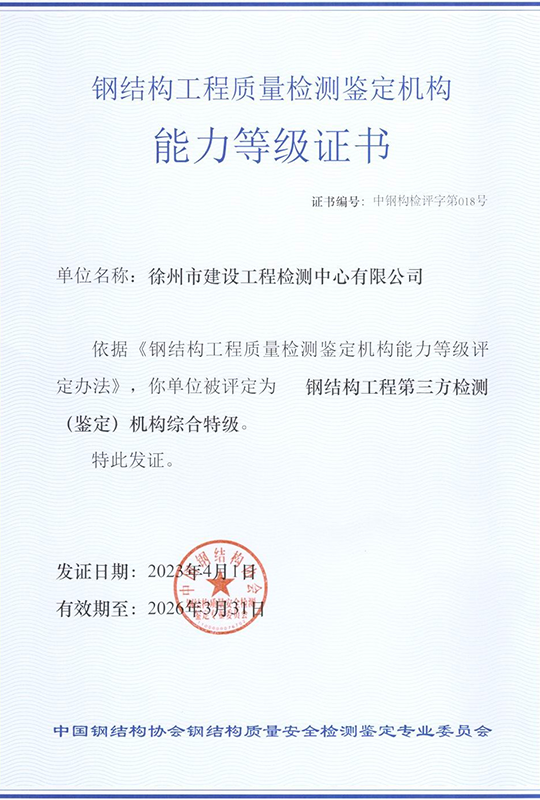徐州市建設(shè)工程檢測(cè)中心有限公司(以下簡(jiǎn)稱(chēng)徐建檢測(cè)公司)是徐州市產(chǎn)城發(fā)展集團(tuán)有限公司(以下簡(jiǎn)稱(chēng)產(chǎn)城集團(tuán))的全資子公司。徐建檢測(cè)公司前身為徐州市建設(shè)工程檢測(cè)中心,2018年事轉(zhuǎn)企改制,2020年4月,完成轉(zhuǎn)企改制資產(chǎn)劃轉(zhuǎn)工作。 徐建檢測(cè)公司是集檢測(cè)、檢驗(yàn)、鑒定、咨詢(xún)等技術(shù)服務(wù)為一體、具有獨(dú)立法人資質(zhì)的綜合性第三方服務(wù)機(jī)構(gòu)。公司主要從事建設(shè)工程領(lǐng)域相關(guān)工程質(zhì)量檢測(cè)及技術(shù)咨詢(xún)服務(wù),業(yè)務(wù)覆蓋地基基礎(chǔ)、建筑材料、建筑結(jié)構(gòu)、鋼結(jié)構(gòu)工程、市政工程、綠色建筑節(jié)能工程、建筑安全與施工設(shè)備、建筑防水、建筑水電、裝飾裝修、建筑物防雷、室內(nèi)環(huán)境、房屋安全鑒定、城市軌道交通工程等專(zhuān)業(yè)領(lǐng)域。......